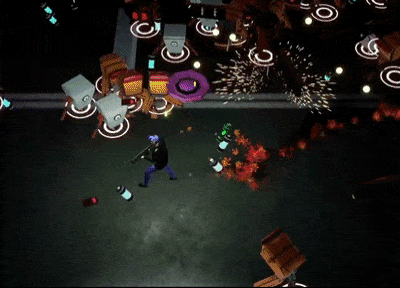 Satellite robot enemy and projectile models, Destroyer Disk ability model, Napalm boots material and flame trail, napalm damages enemies, auto fire toggle for primary ability, time freezes for boss battle, boss countdown, visual effects (pickup for experience and health, firework, level up, ring around player, floating cross), health booster functionality and model, visual indicator for the enemy range, enemy red light pulse to indicate seeking or angry mode, post-match summary screen, pause menu functionality, kill counter
